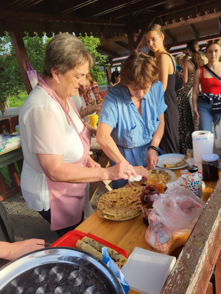 A Kazár Nyugdíjasaiért Egyesület tagjai a Magyar Táncművészeti Egyetem néptánc szakos hallgatóinak mutatták be a kazári laskasütést. Nagyon ügyesek a lányok, jövőre a Laskafesztiválra várjuk Őket!